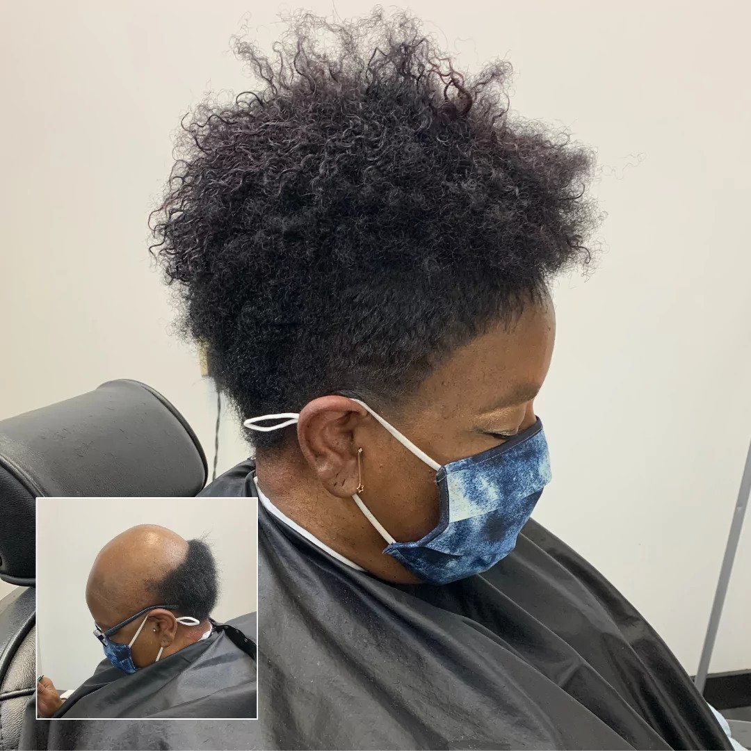 For afro, coily and curly hair. This is a single hair piece matched to the colour and texture of you hair, applied with a skin safe adhesive. The unit is then styled and cut to produce an almost undetectable finish. This units last 3-4 month with proper care and maintenance