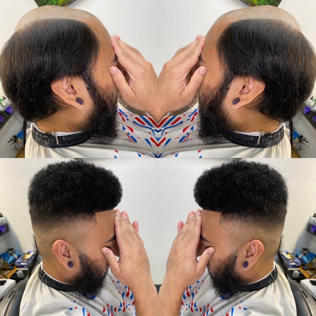 Tomnee Muhammad has been installing hair systems for 6 years. He’s a licensed Barber Instructor based in DeKalb, IL. which means he’s not just doing the work, he’s teaching it to other barbers. He works with afro, coily, and straight hair. His clients don’t just come from Chicago, they travel from California, New York, Texas, Iowa, Memphis, and as far as Africa to sit in his chair. If you’re looking for someone who does this full time, takes it seriously, and knows what an undetectable result actually looks like — Tomnee is that person.